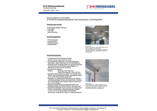 Infoblatt G+H RR-Kreuzbandrasterdecke Typ VarioAccess „nicht begehbar“
