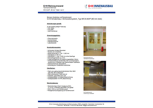 Infoblatt G+H Schalenbau-/ Achsrastersystem, Typ WS 8 AS/P (80 mm dick)