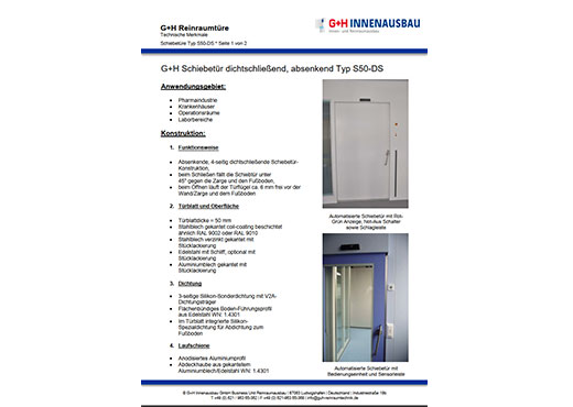 Infoblatt G+H Schiebetür dichtschließend, absenkend Typ S50-DS