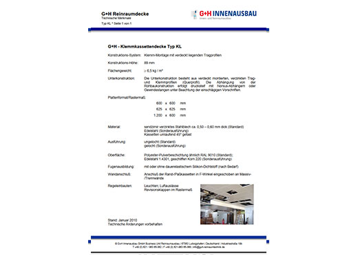 Infoblatt G+H Klemmkassettendecke Typ KL